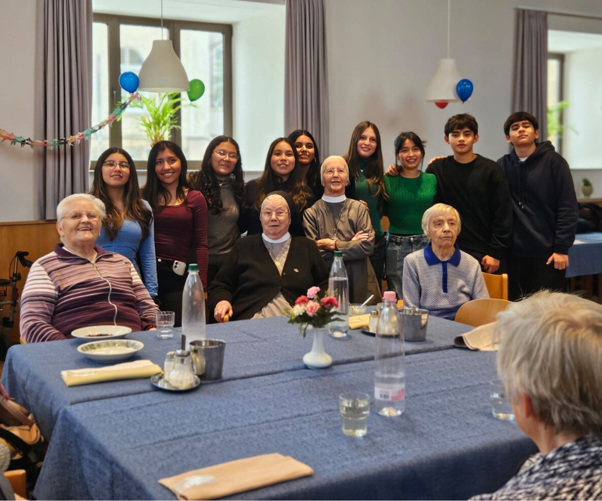 Besonders bewegend war das Wiedersehen für drei Ordensschwestern, die viele Jahre in Peru gelebt haben und heute im Konvent Katharina im Altenpflegeheim wohnen. Schwester M. Salvatoris, Schwester M. Herma und Schwester M. Liberata nutzten die Gelegenheit, mit den Jugendlichen und ihren Lehrerinnen und Lehrern Spanisch zu sprechen und Erinnerungen auszutauschen.