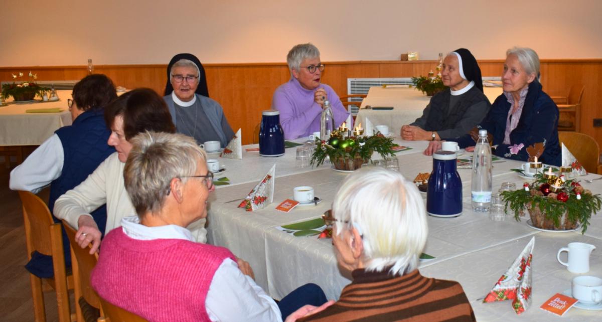 Gemütliche Atmosphäre: Hauptamtliche und ehrenamtliche Mitarbeiterinnen und Mitarbeiter des Altenpflegeheims St. Paulus haben sich zum Adventskaffee getroffen.
