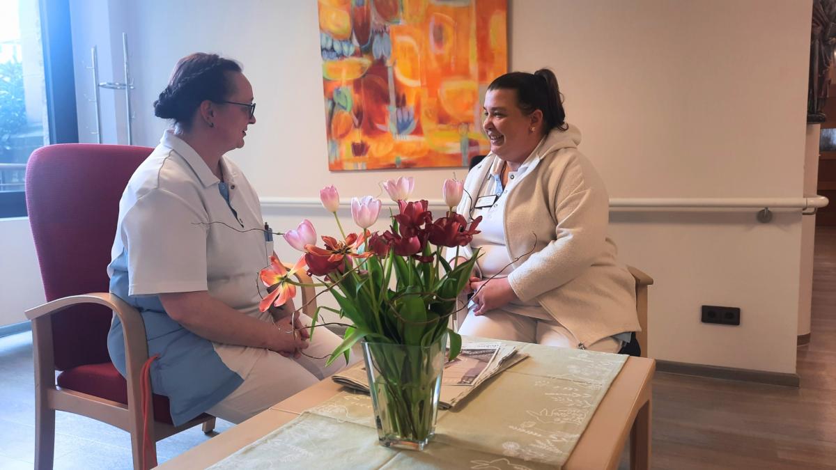 Am 1. Februar 2024 haben Raperin Bayram und Elvira Xhaferi ihre generalistische Ausbildung zur Pflegefachkraft begonnen. Beide haben zuvor Erfahrungen als Pflegehelferinnen im Altenpflegeheim St. Paulus gesammelt. Frau Bayram hat sogar ihr FSJ bereits im St. Paulus absolviert. Jetzt sind die beiden zurück im Haus für ihren siebenwöchigen Praxiseinsatz.