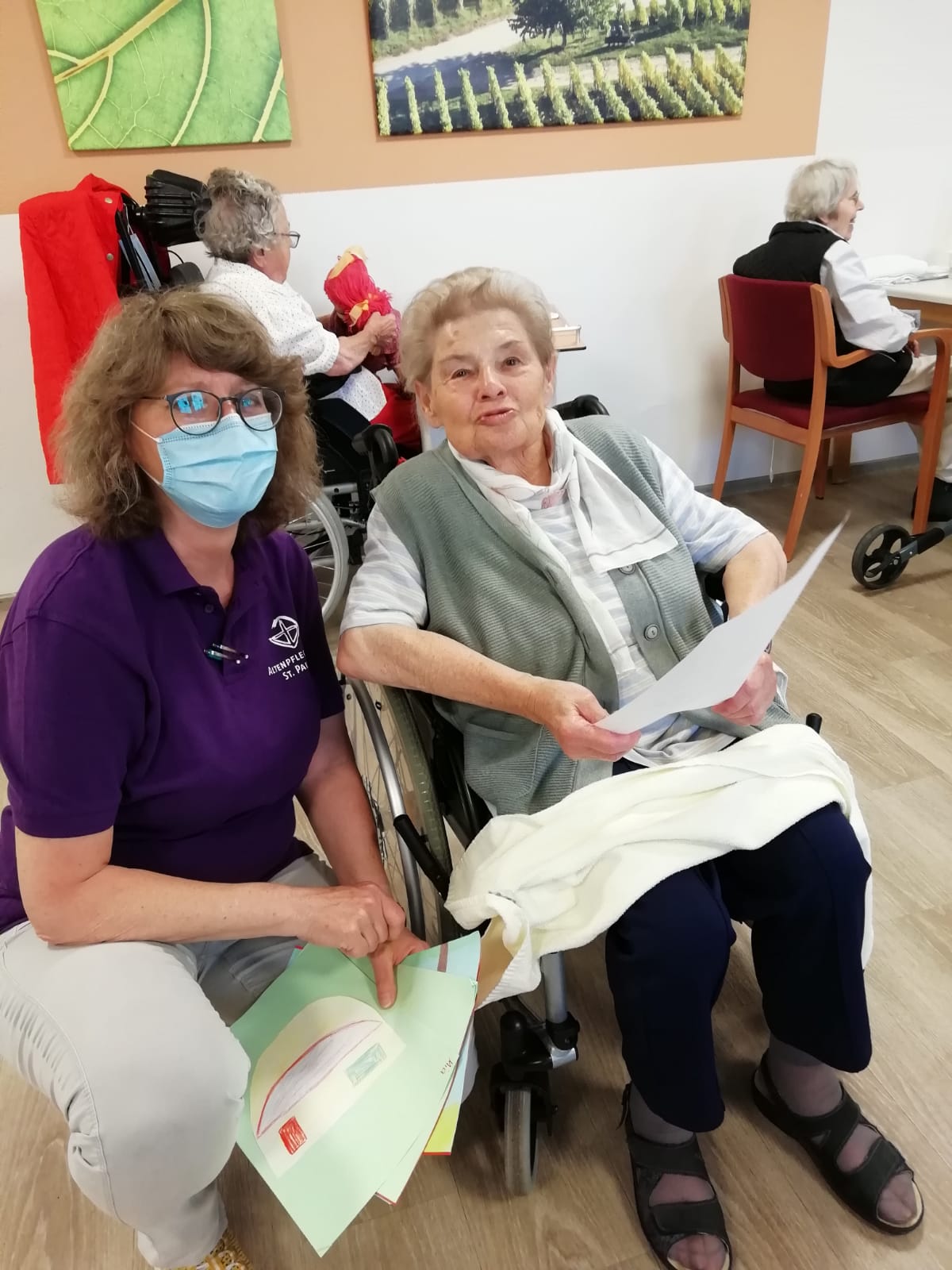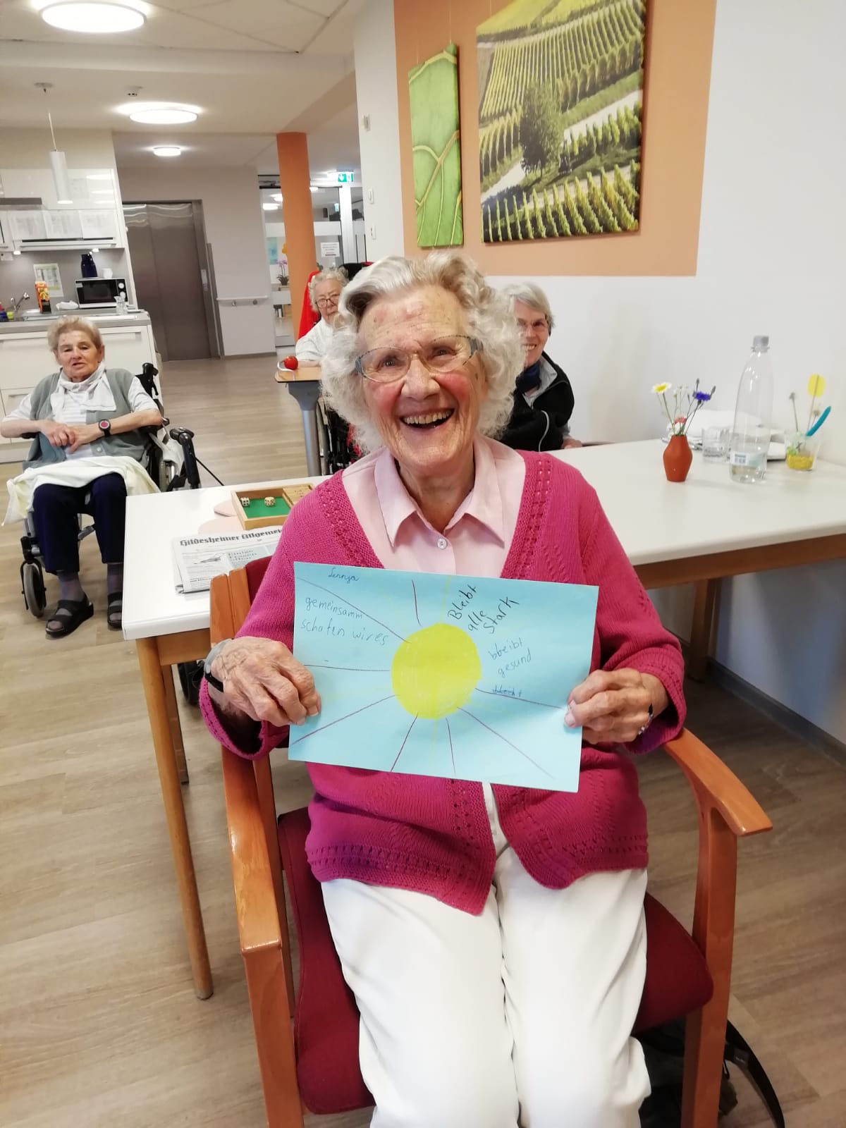 Grund der Freude: Schülerinnen und Schüler der Klasse 5c der St. Augustinus-Schule haben, begleitet von Klassenlehrerin Hanka Holze, Bilder gemalt und Briefe geschrieben, die unsere Bewohner:innen heute erreicht haben.