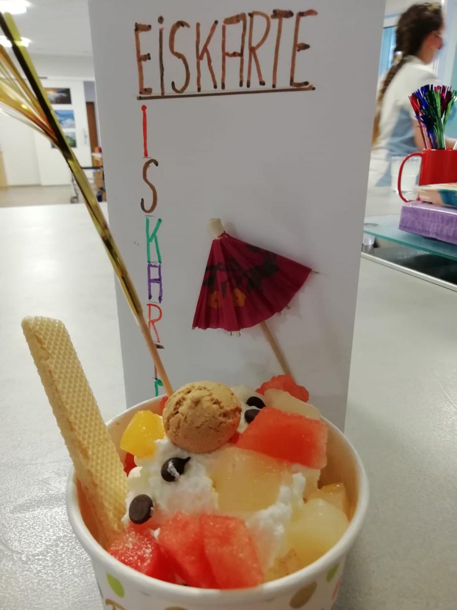 "Heiß auf Eis" lautete das Motto eines geselligen Nachmittages bei uns im St. Paulusheim. Aus selbst kreierten Eiskarten hatten unsere Bewohner*innen die Qual der Wahl und konnten aus drei verschiedenen Eisvarianten wählen. Anschließend wurde der Eisbecher in gemütlicher Atmosphäre an einem schattigen Plätzchen verzehrt. Die Bewohner*innen waren begeistert von der willkommenen Abkühlung und freuen sich schon auf eine Wiederholung unserer eiskalten Aktion!