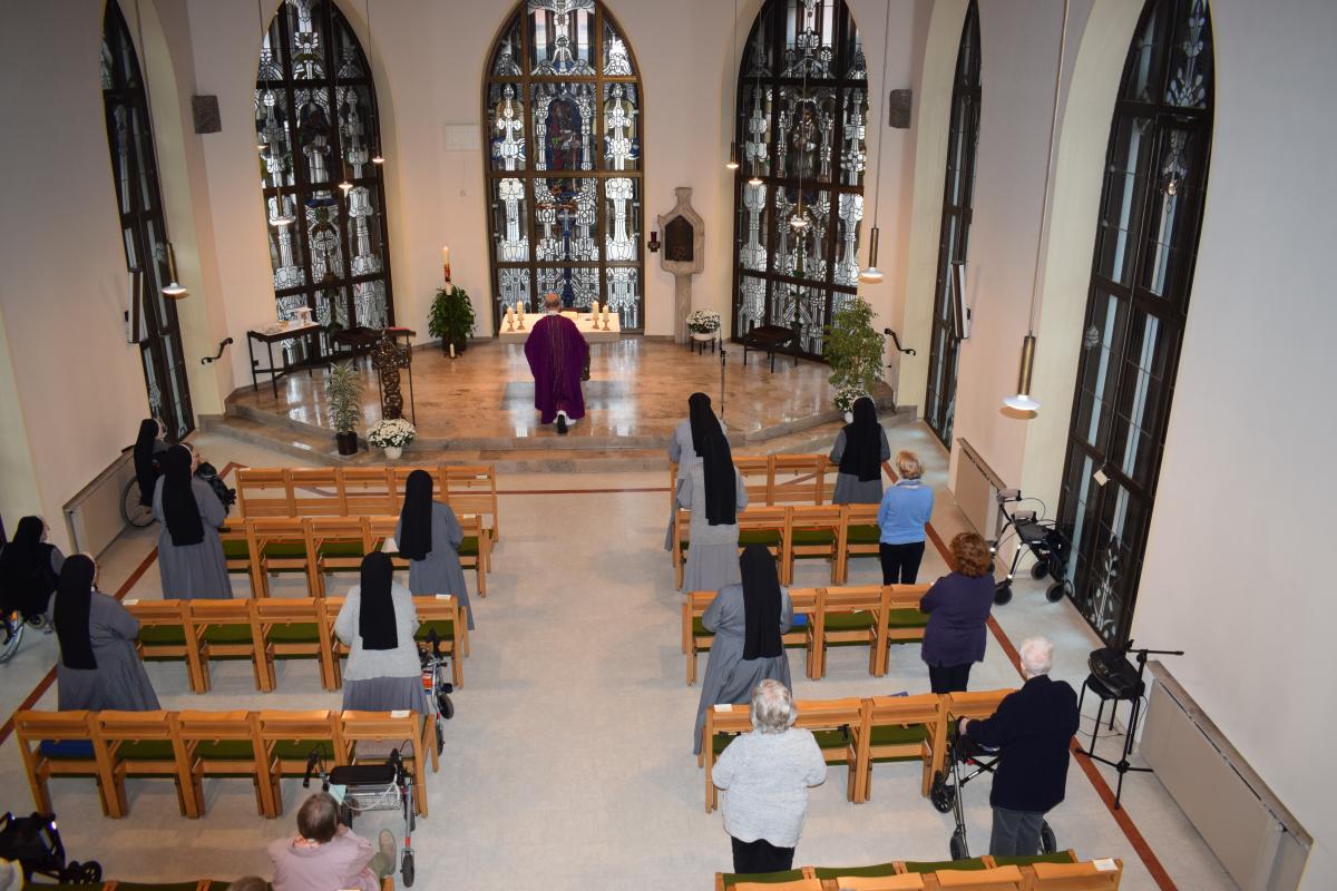 Im Rahmen eines Gottesdienstes zum Fest Allerseelen ist am gestrigen Montag der in diesem Jahr verstorbenen Paulusheim-Bewohner*innen gedacht worden. Normalerweise findet der Gottesdienst mit den Angehörigen der Verstorbenen statt, doch aufgrund der Pandemie-Lage ist dies in diesem Jahr leider nicht möglich. Dennoch wollten wir den Angehörigen die Möglichkeit geben, auf andere Weise dabei sein können, zum Beispiel durch ein Gebet oder das Entzünden einer Kerze. Wir hoffen, dass wir im kommenden Jahr wieder gemeinsam mit den Angehörigen unseren Gedenkgottesdienst begehen können.