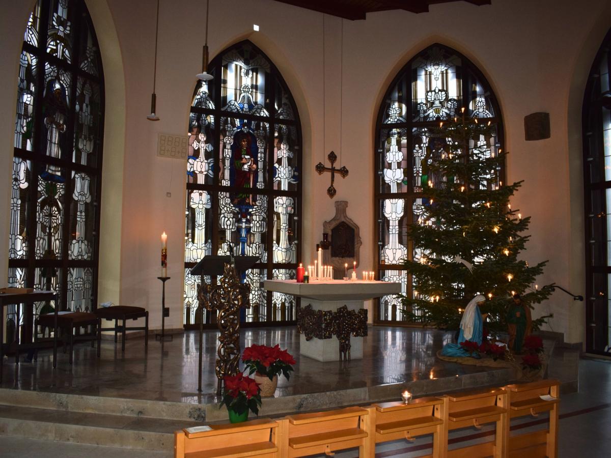 An den Sonntagen im Advent, den Weihnachtsfeiertagen sowie an Silvester und Neujahr wird die Heilige Messe mit Pfarrer Wolfgang Osthaus um 9:30 Uhr gefeiert. Am Heiligabend findet der Gottesdienst um 16 Uhr statt. Und am ersten Weihnachtsfeiertag leiten Weihbischof Hans-Georg Koitz und Prälat Dr. Nikolaus Wyrwoll den Gottesdienst.