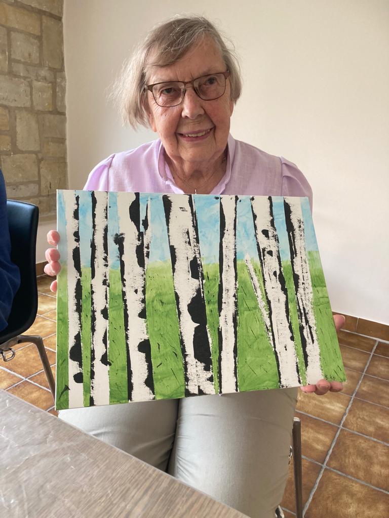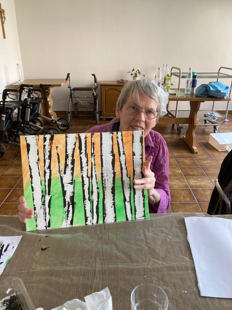 Am Freitag, 13. August, haben sich unsere Bewohner*innen wieder einmal in der Kreativrunde ausprobiert. In der gemütlichen Kaffeestube entstanden unter Anleitung von Bettine Manz kleine Kunstwerke.