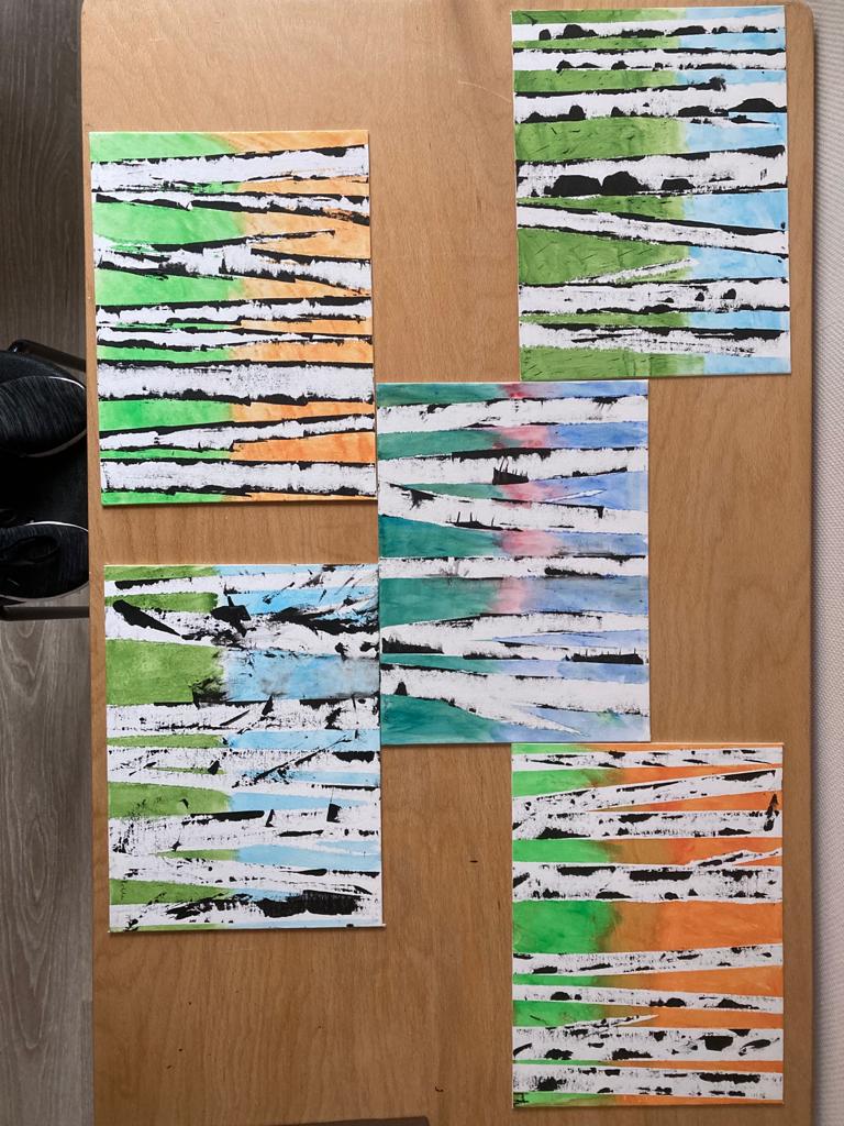 Gemalt wurde mit Alltagsgegenständen, z.B. mit Scheckkarten, dabei konnten die Teilnehmer*innen entspannen und sich schließlich über ihr Kunstwerk freuen.