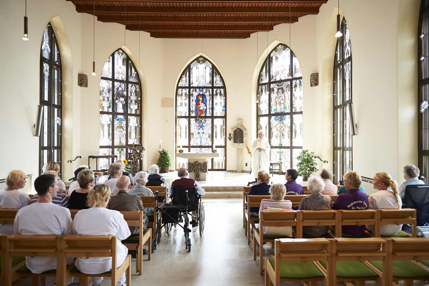 Die heilige Messe im Altenpflegeheim St. Paulus wird dienstags, donnerstags und sonntags sowie an christlichen Feiertagen um 9.30 Uhr gefeiert. Regelmäßig finden auch Andachten statt. Alle Gottesdienste und Veranstaltungen in der Kapelle können auch in die Zimmer des Altenpflegeheims übertragen werden.