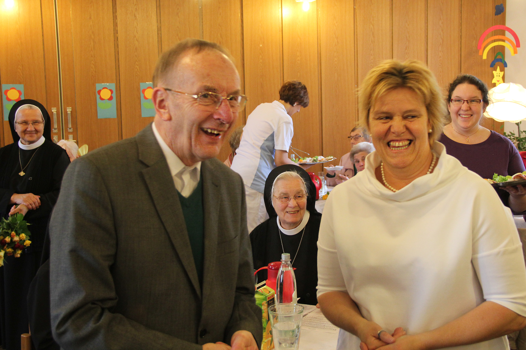 Überraschung und Rührung waren Pfarrer Franz-Josef Schubert deutlich anzusehen – zu seinem 80. Geburtstag würdigten die Mitarbeiter und Bewohner des Paulusheims ihren Hausgeistlichen mit einem selbstgestalteten Gottesdienst. Insgesamt mehr als 80 Gäste, unter ihnen zahlreiche Schwestern aus dem benachbarten Mutterhaus der Kongregation der Barmherzigen Schwestern vom hl. Vinzenz von Paul in Hildesheim, Beschäftigte und Bewohner des Paulusheims sowie viele Gäste aus den umliegenden Pfarrgemeinden nahmen an der Messe in der Kapelle der Einrichtung und dem anschließenden Empfang teil. Neben Schwester M. Pankratia an der Orgel begleitete diesmal auch Angelika Röde aus der katholischen Pfarrgemeine Liebfrauen mit drei weiteren Frauen den Gottesdienst musikalisch.