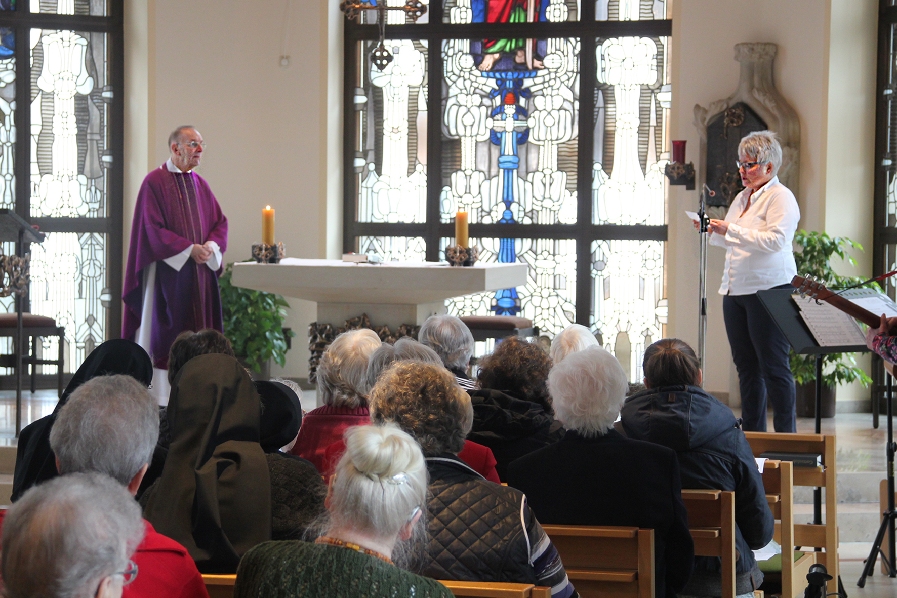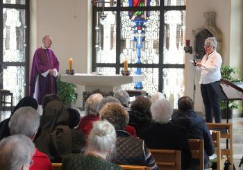 Pfarrer Schubert ist bereits seit neun Jahren als Seelsorger im Paulusheim tätig. „Neben den beinahe täglichen Messen, die Sie in unserer Kapelle mit Ihrem umfangreichen Netzwerk anbieten, sind Sie auch jeder Zeit für unsere Bewohner und Mitarbeiter in allen geistlichen Angelegenheiten da“, würdigte Pflegedienstleiterin Andrea Rebber die Arbeit des Geistlichen, der einen sehr engen Kontakt zu den Menschen des Paulusheims hält. Diese enge Verbundenheit spiegelte sich auch in den Fürbitten wieder, die Mitarbeiter und Bewohner während der Messe vortrugen.
