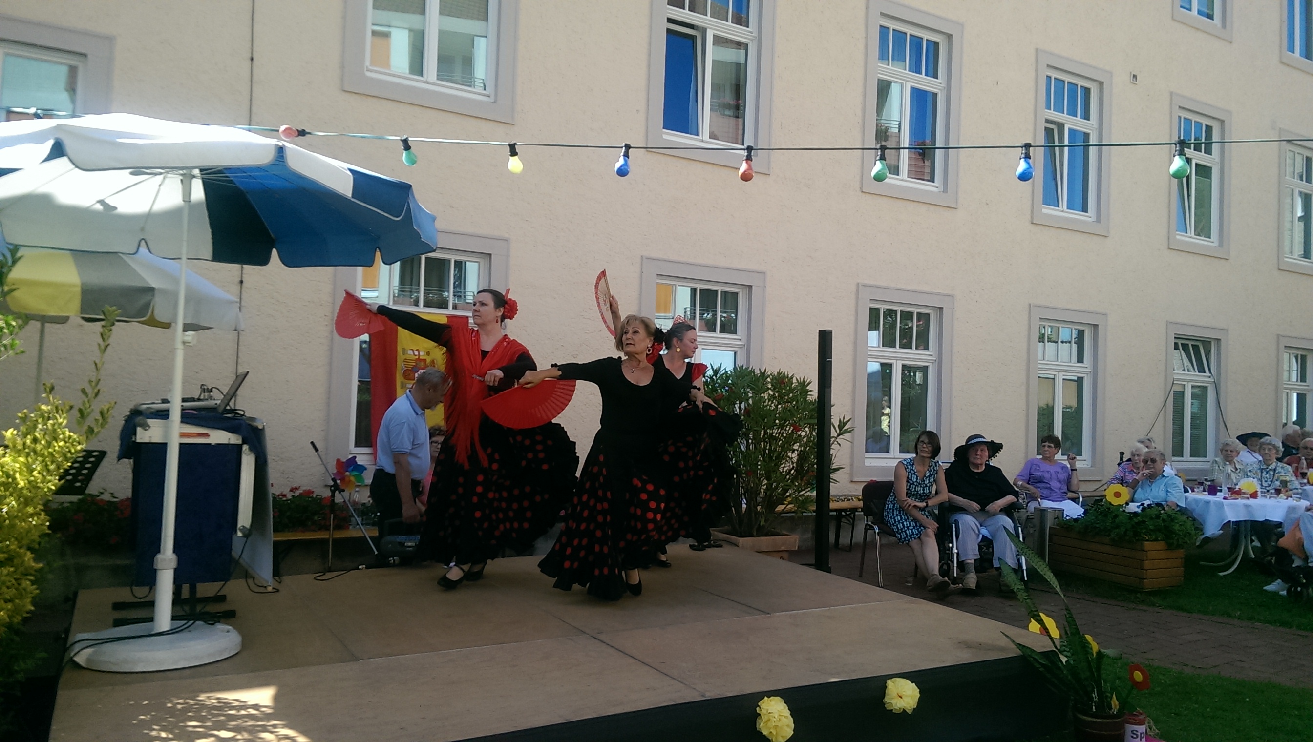 Angehörige, Bewohner, Mitarbeiter, Ordensschwestern und Freunde des Hauses waren zahlreich erschienen um gemeinsam zu feiert. Zu Beginn des Festes nutzte Heimleiterin Christiane Ernst die Gelegenheit um sich einmal bei allen ihren Mitarbeitern zu bedanken: „Ohne euch liefe hier gar nichts“. Danach spielte der Alleinunterhalter Willi Sitter zum Tanz auf und begeisterte die Anwesenden mit Liedern wie „Wenn bei Capri die rote Sonne im Meer versinkt“ und sogar spanische Hits wie „Amor, amor“ von Julio Iglesias hatte er in petto. Höhepunkt der Veranstaltung war die Flamencogruppe „Fleur de la Canela“ die die Zuschauer mit spanischen Tänzen begeisterte.