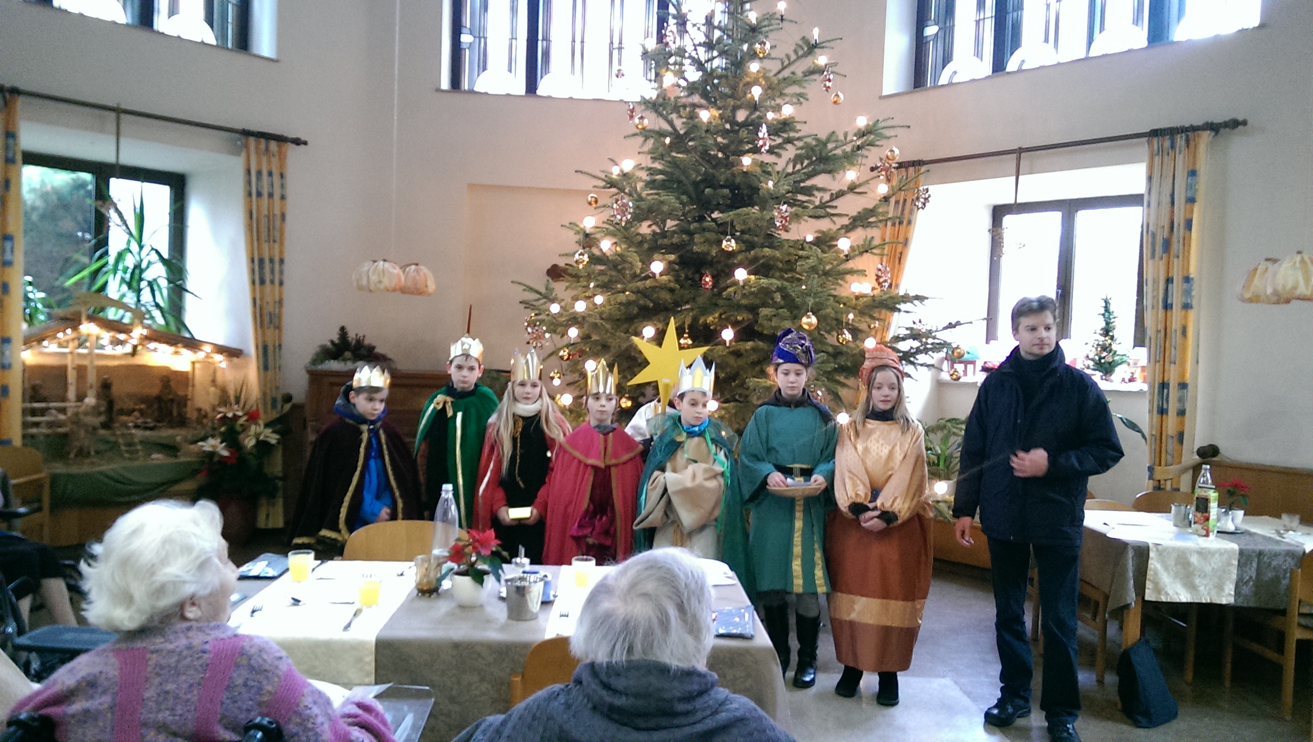 Das Sternsingen ist ein katholischer Brauch. Die Sternsinger ziehen verkleidet als die Heiligen Drei Könige durch die Gemeinden und sie hinterlassen Segensbitten an den Häusern, die sie besuchen. Die über der Eingangstür platzierte Formel 20*C+M+B+15 soll Gottes Segen auf das Haus und seine Bewohner herabrufen und vor Unglück schützen. Hierbei steht der Stern für den Stern von Bethlehem, die drei Kreuze für den Dreifaltigen Gott und die drei Buchstaben sind die Abkürzung für „christus mansionem benedicat“ (lateinisch für „Christus segne dieses Haus.“). Der Besuch der Sternsinger ist für die Bewohner des Paulusheims immer eine besondere Freude. Dieses Jahr waren gleich acht Heilige aus dem Morgenland gekommen. Die Schüler aus der 5. und 6. Klassenstufe, sangen „Wir kommen daher aus dem Morgenland“ und sprachen danach die Haussegnung 2015. Am Nachmittag feierten die Bewohner des Altenpflegeheims noch einmal, bei Kaffee und Kuchen, das Dreikönigsfest.